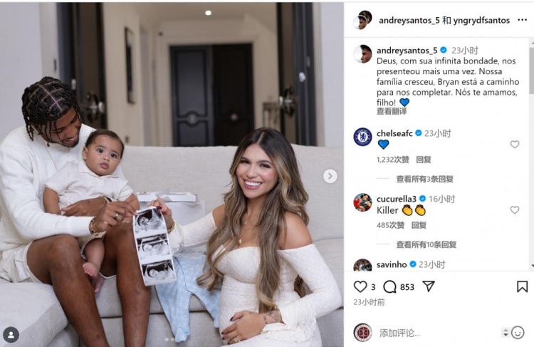 2025-10-17 08:15:37恭喜!安德烈-桑托斯社媒晒一家合照,宣布妻子怀二胎